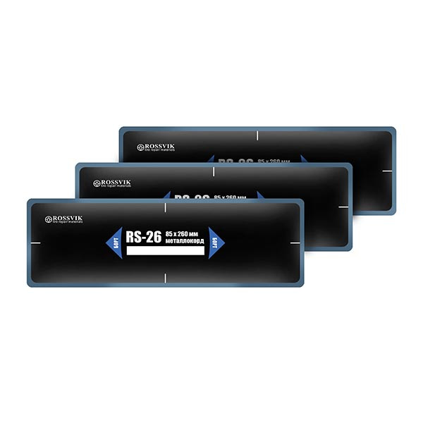 Пластыри металлокордовые для ремонта радиальных шин("холодная вулканизация") Пластыри ROSSVIK вулканизируются "горячим" и "холодным" способами. Для установки химического пластыря "на горячую" применяется клей-активатор.При перегреве пластыря во время эксплуатации его прочные характеристики не меняются.